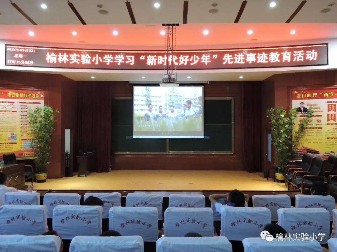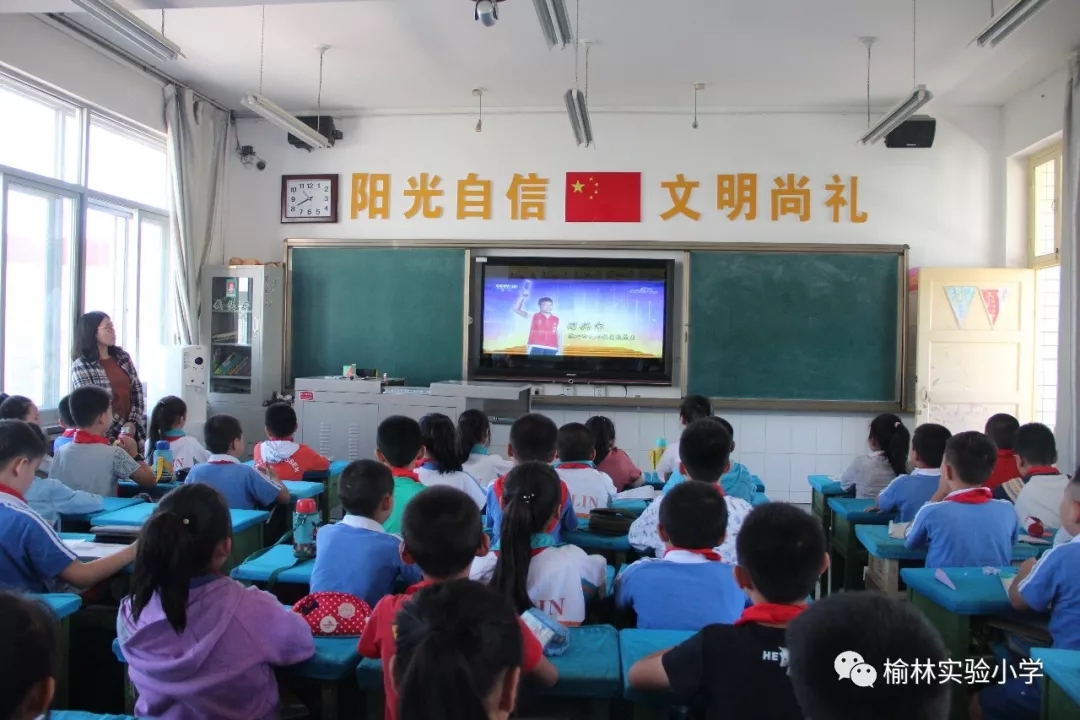 2018年9月3日的少先队活动课上,榆林实验小学组织全体少先队员观看了“新时代好少年”先进事迹教育活动。