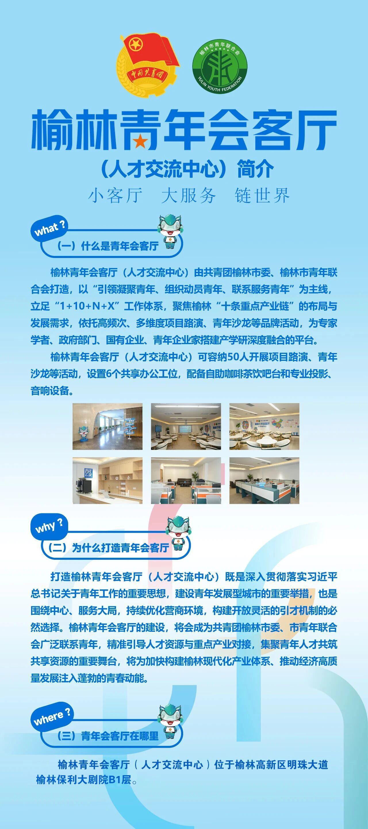 “榆林青年会客厅”是团市委、市青联与高新区管委会整合资源、协同发力,为青年人才量身打造的综合服务平台。旨在通过常态化举办项目路演、交流沙龙等活动,构建一个没有围墙的“青年聚点”,使之成为凝聚青年智慧的“思想库”、链接产业资源的“连接器”和展示青年风采的“新窗口”,为榆林高质量发展注入强劲的青春动能。