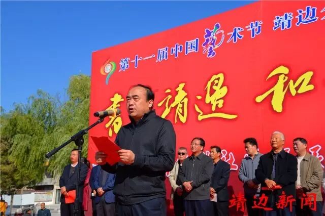 在十一届中国艺术节即将开幕,10月14日,由张家畔街道办组织开展的“书香靖边、和谐社区——市县书法(画)家进社区暨民间手工艺品展”启动仪式在民乐园广场举行。县委常委、副县长刘波讲话并宣布活动正式启动。