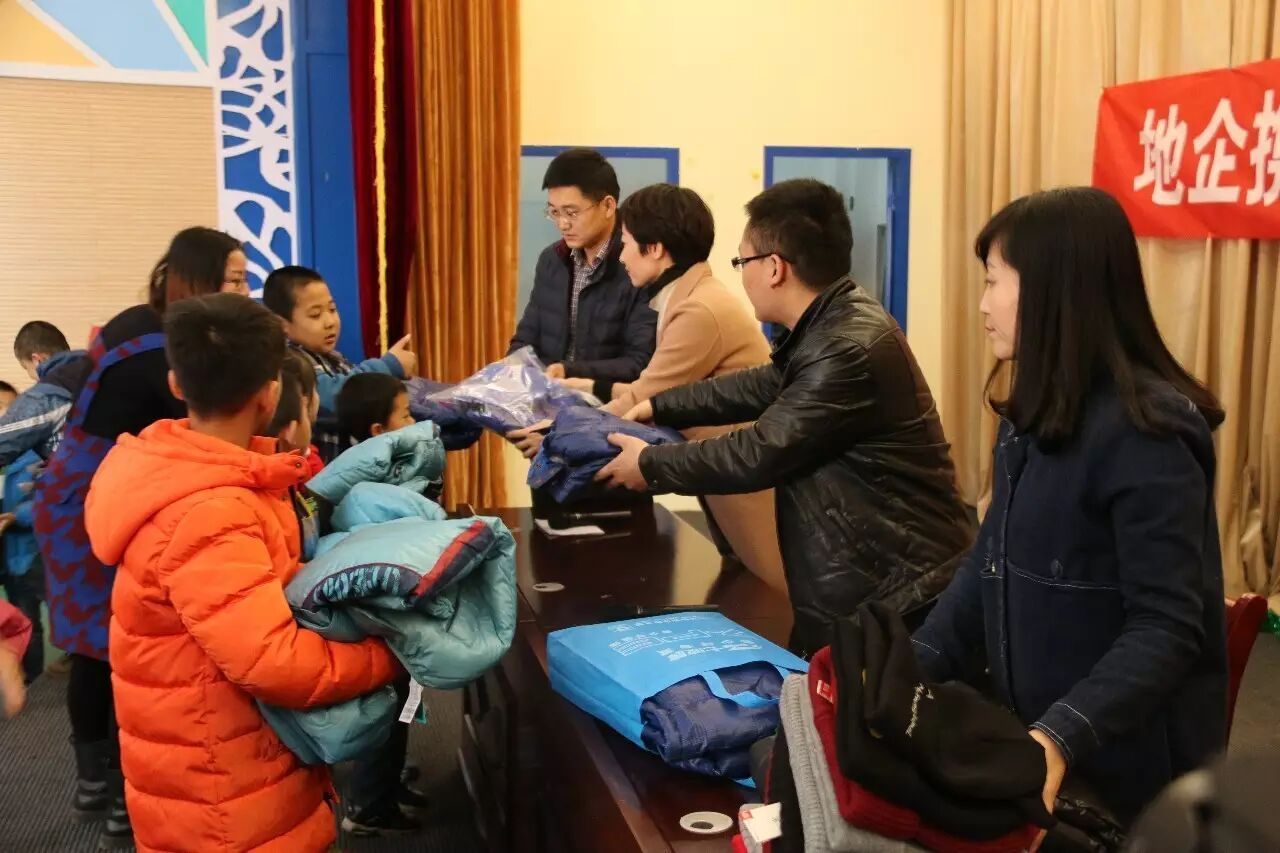 在捐赠仪式上,共青团神木县委副书记屈虹和陕煤化集团神南矿业公司团委书记高海军、神南张家峁矿业公司团委副书记王小利将手套、衣服等物资分发到孩子们手中。